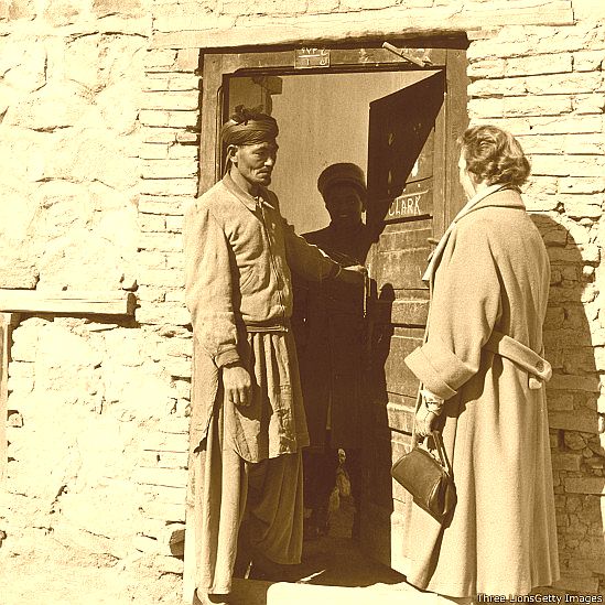 In 1955 stealing became very common in Kabul, this picture shows a woman coming to report burglary with her modern style atire.
