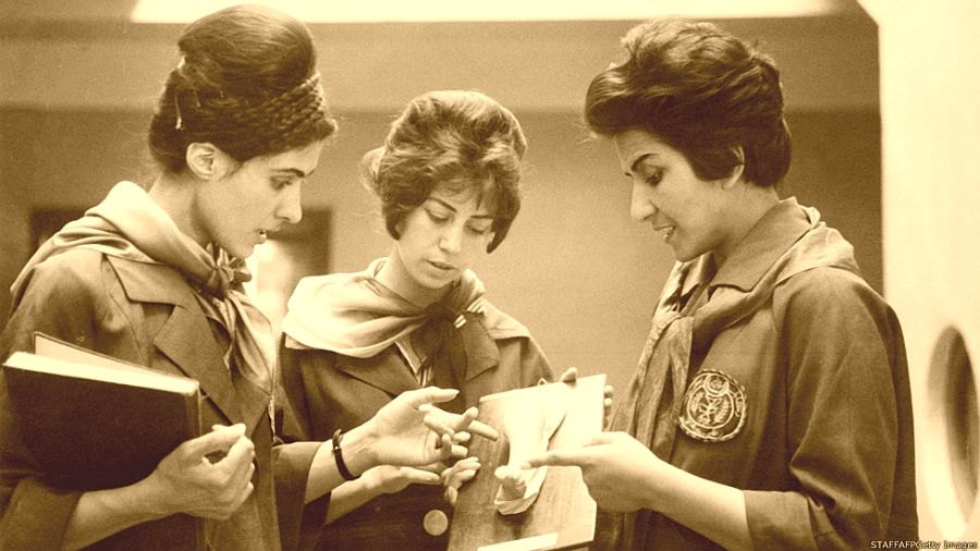 1962 a combination of old and new women were seen in both Burqa and Skirt
